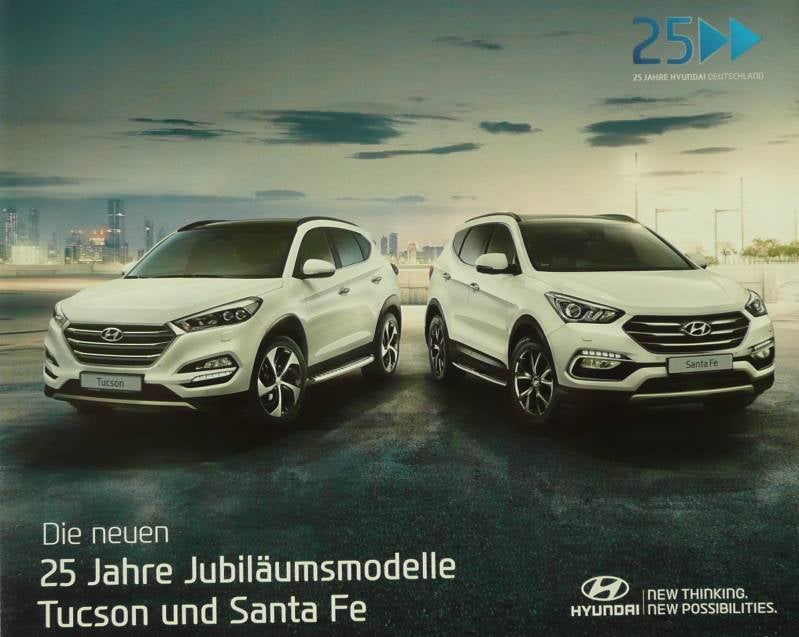 Een Duitstalige brochure met 8 pagina's. Uitgifte datum 08-2016. Beschrijft de 25 jarige jubileums modellen van de Tuscon en Santa Fe.