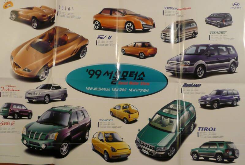 Een uitvouw brochure met proto types van de Motorshow van Seoel 1999.