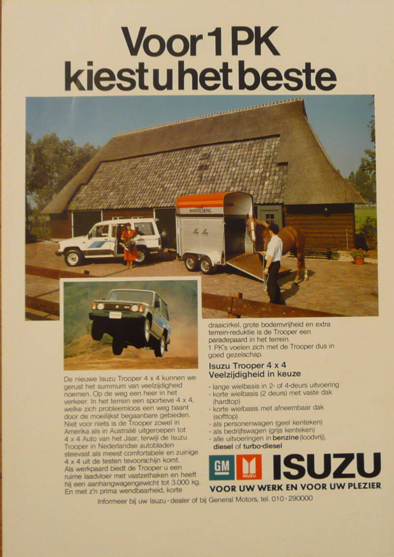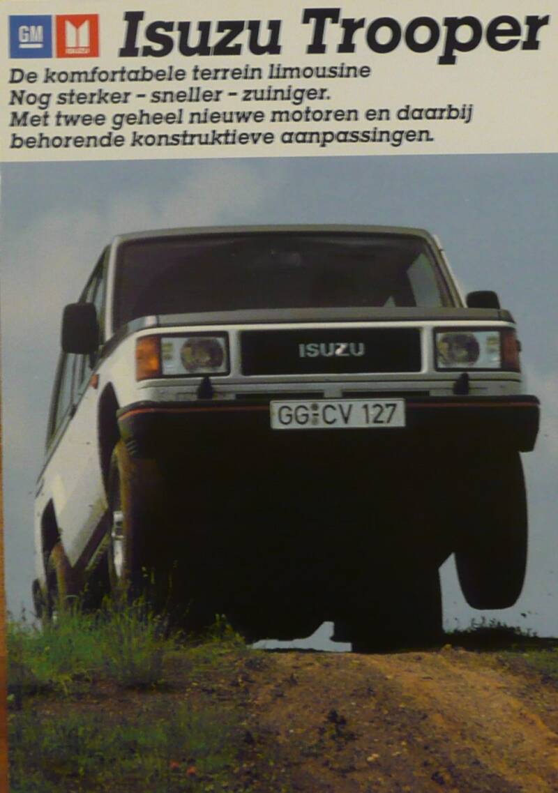 Een enkelzijdige Nederlandse leaflet van de grijs kenteken modellen van de Trooper. Uitgifte datum niet bekent.