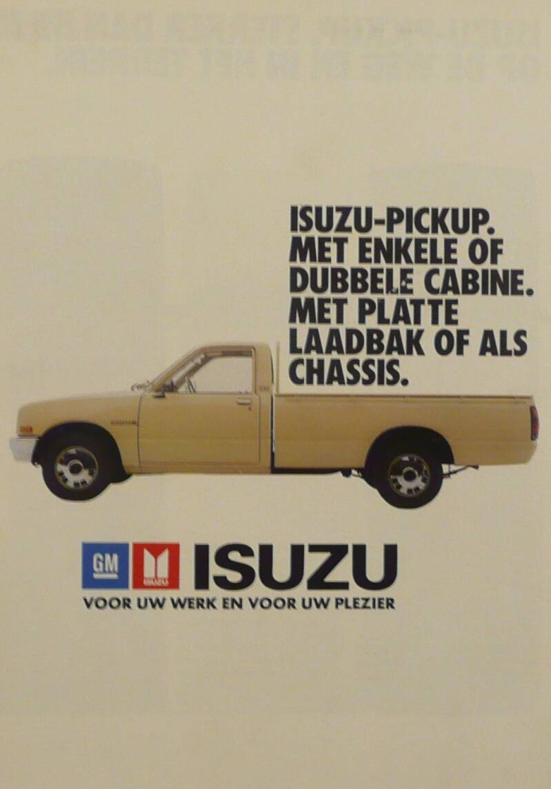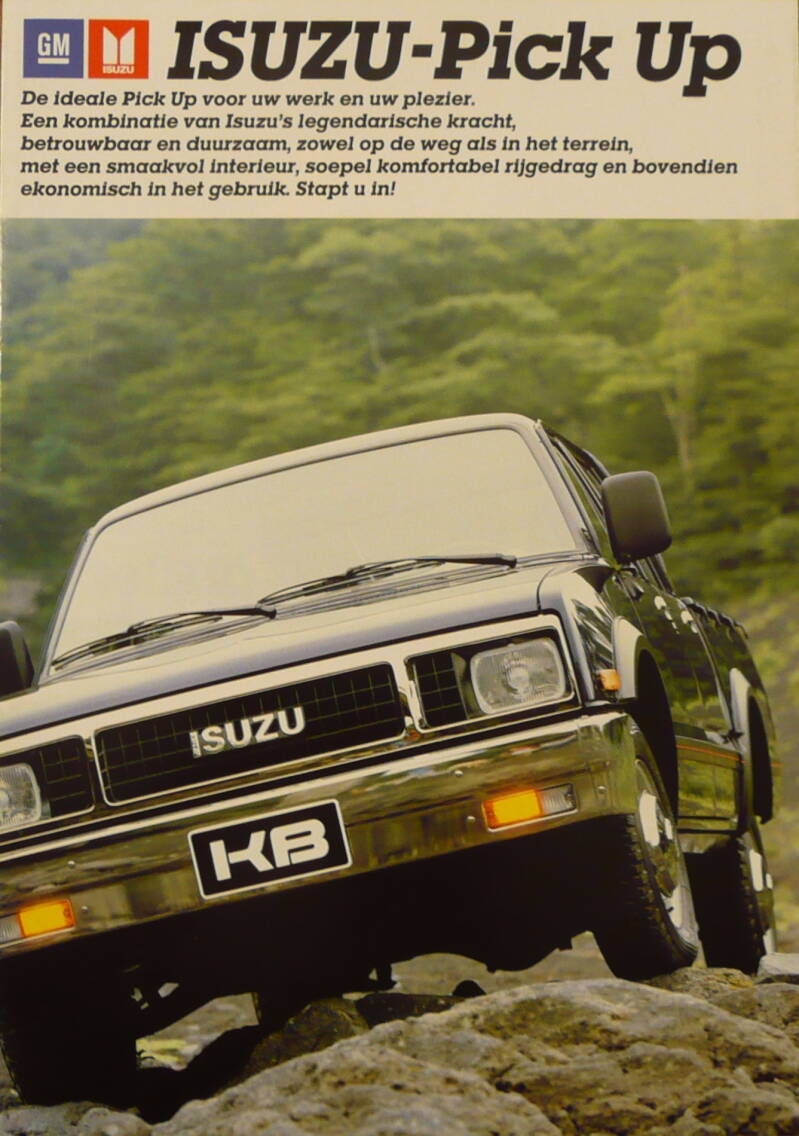 Een Nederlandstalige brochure met 8 pagina's. Uitgifte datum 02-1991. De naam Isuzu staat niet in de brochure wel op de auto.