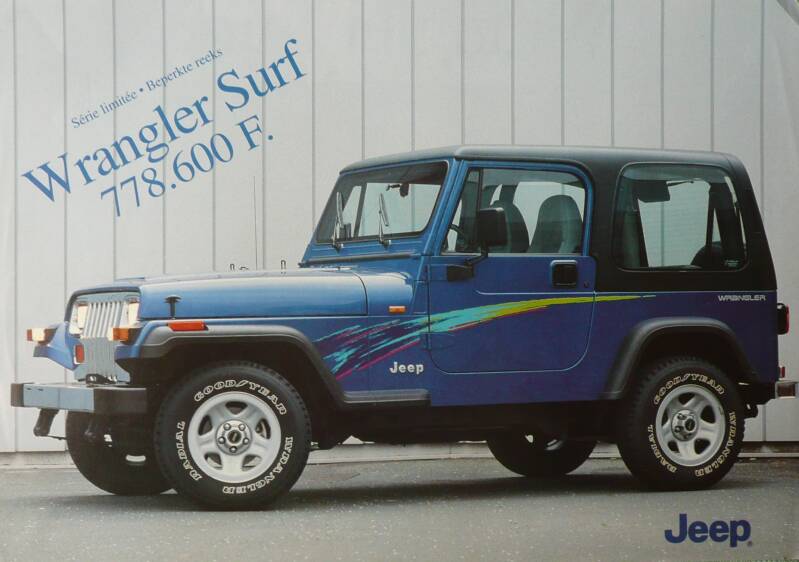 Een tweetalige leaflet uit België. Uitgifte datum niet bekent. Beschrijft de Wrangler Surf.