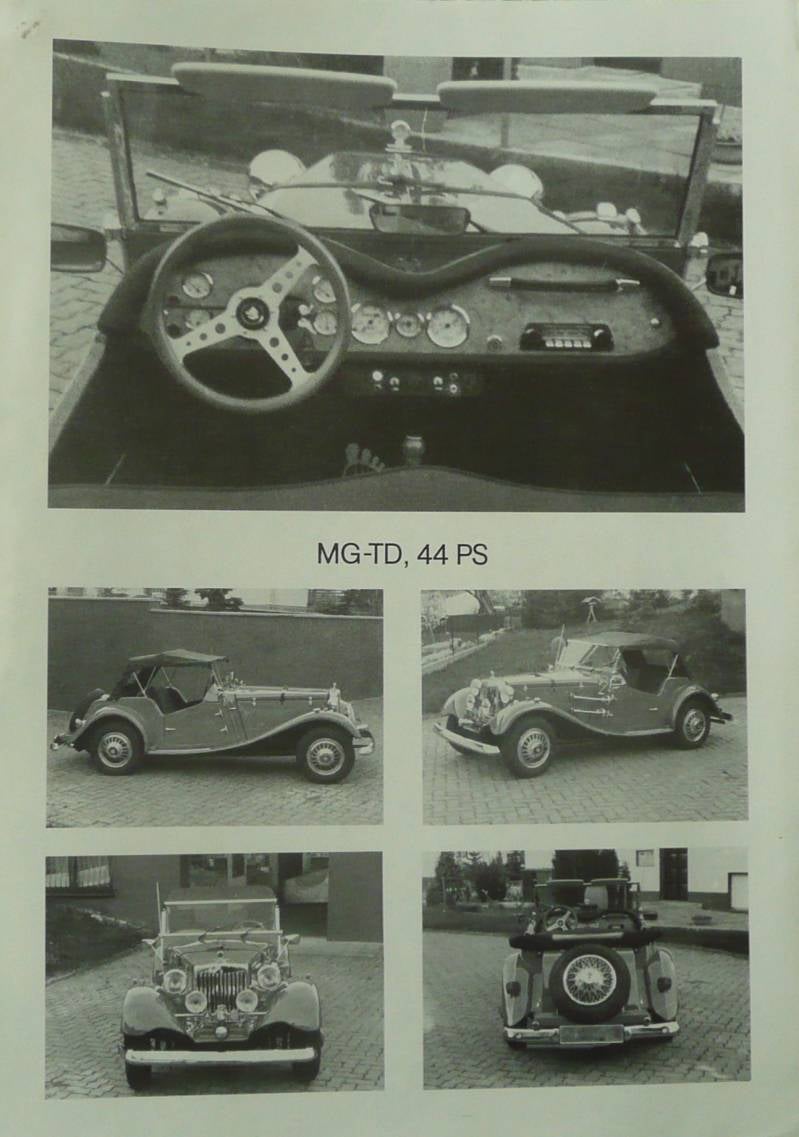 3 losse bladen met gegeven en foto's over de MG TD replica. Uitgegeven in 1990.
