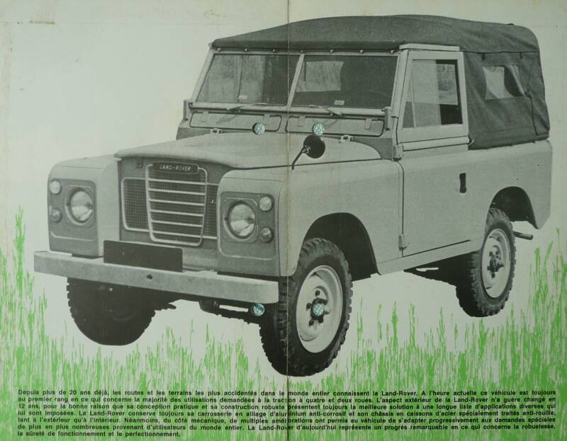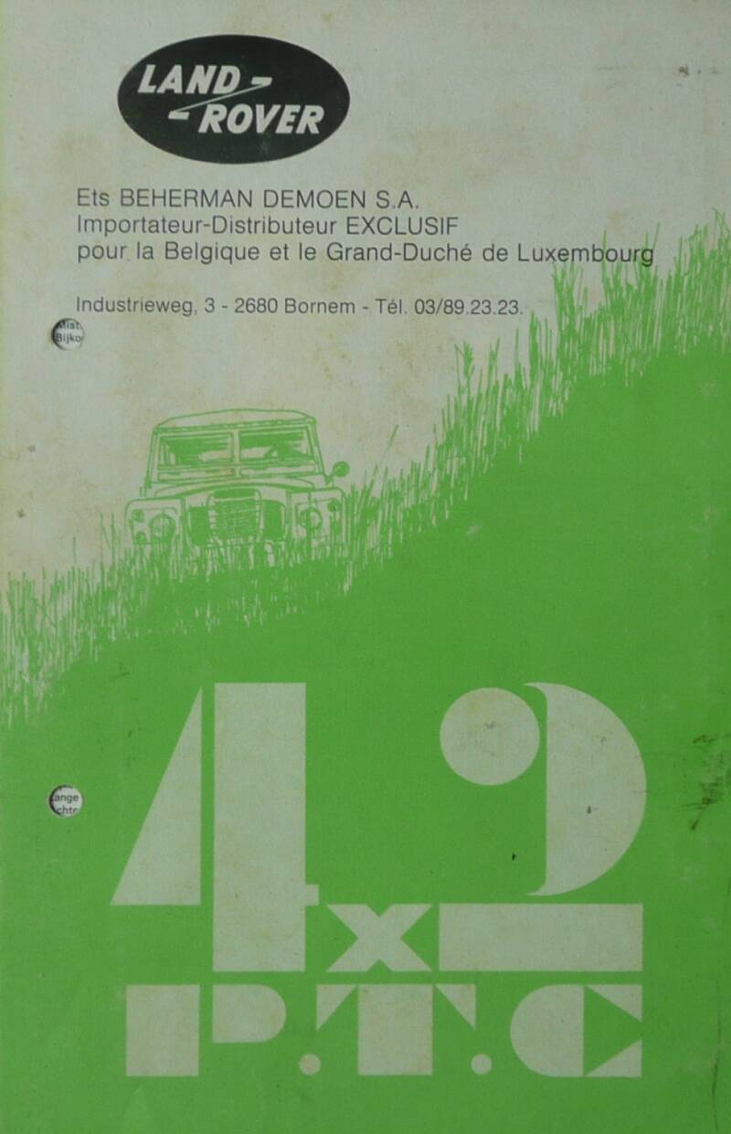 Een Franstalige brochure met 4 pagina's uit België. Uitgifte datum niet bekent. Dit is een redelijk zeldzaam model van de Series 3 Landrover. Periode waarschijnlijk jaren '70 - begin '80.