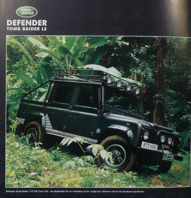 Een Nederlandstalige brochure met 12 pagina's. Uitgegeven in 2001. Beschrijft de Defender Tomb Raider LE naar de gelijknamige film met Angelina Jolie.