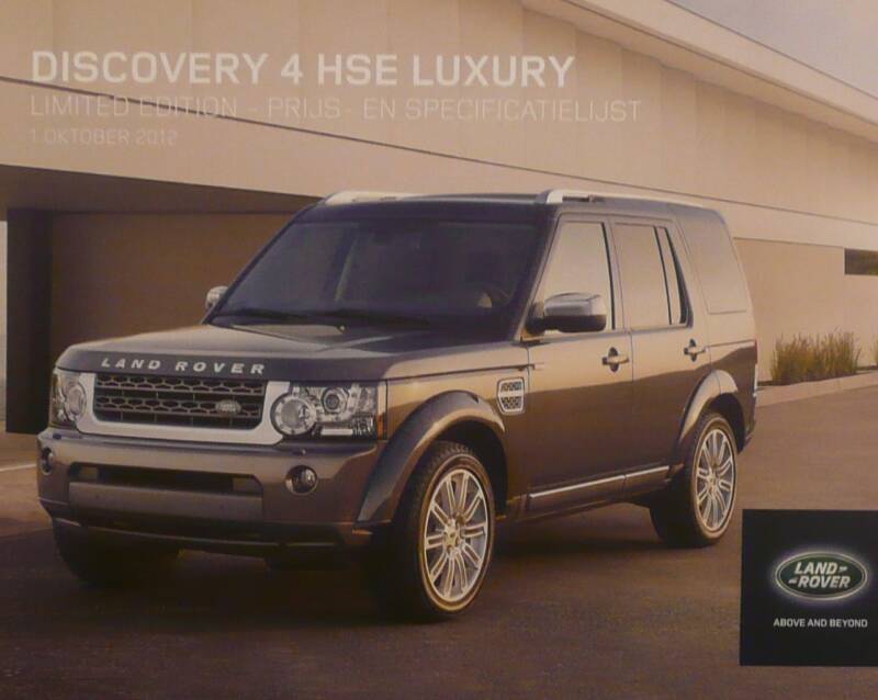 Een Nederlandstalige brochure met 4 pagina's. Uitgifte datum 10-2012. Beschrijft de Discovery 4 HSE Luxury.