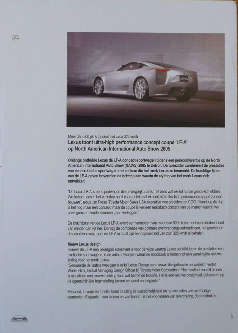 Een Nederlandstalige leaflet van de LF-A Concept. Uitgegeven in 2005 door de Nederlandse importeur.