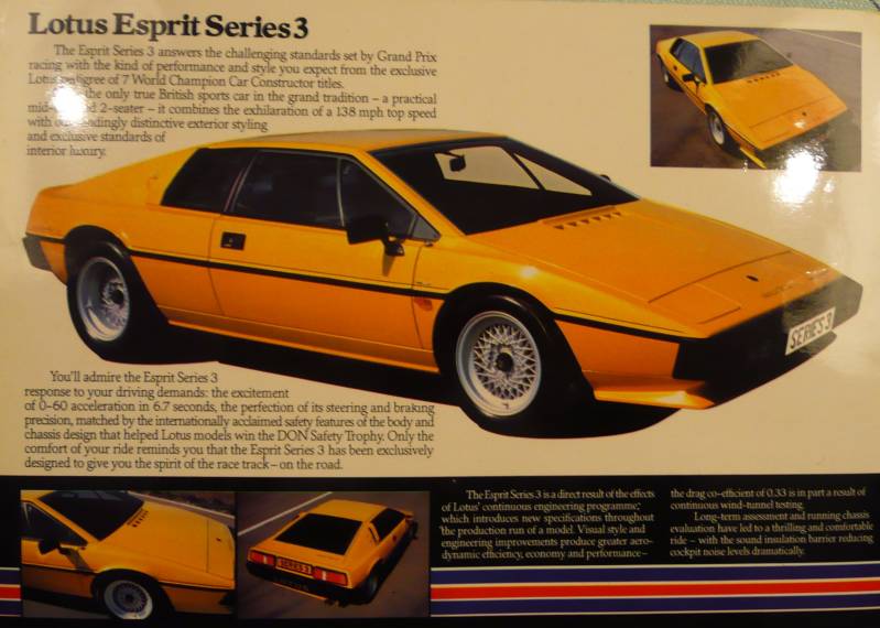 Een Engelstalige brochure met 6 pagina's. Uitgifte datum niet bekent, ongeveer begin jaren 80. Beschrijft de Esprit Turbo en Series 3.