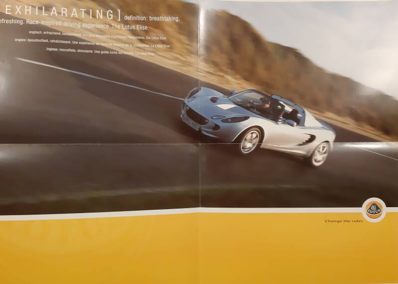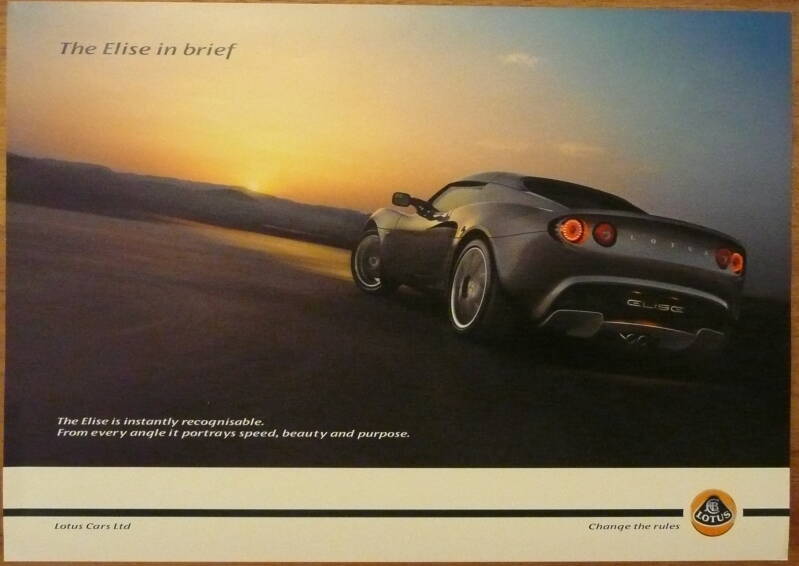 Een Engelstalige map met 9 losse leaflets over de Elise. Uitgifte datum is niet bekent, zo rond 2003.