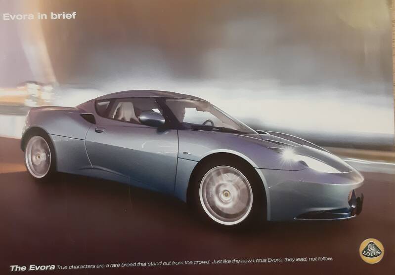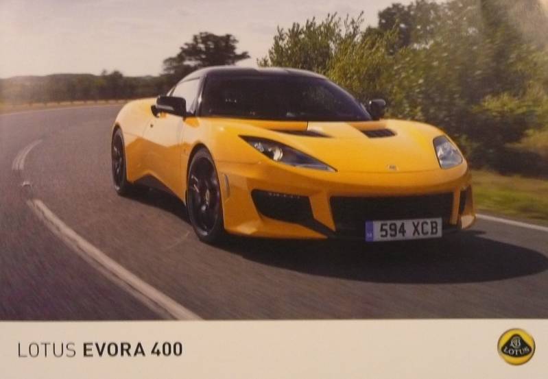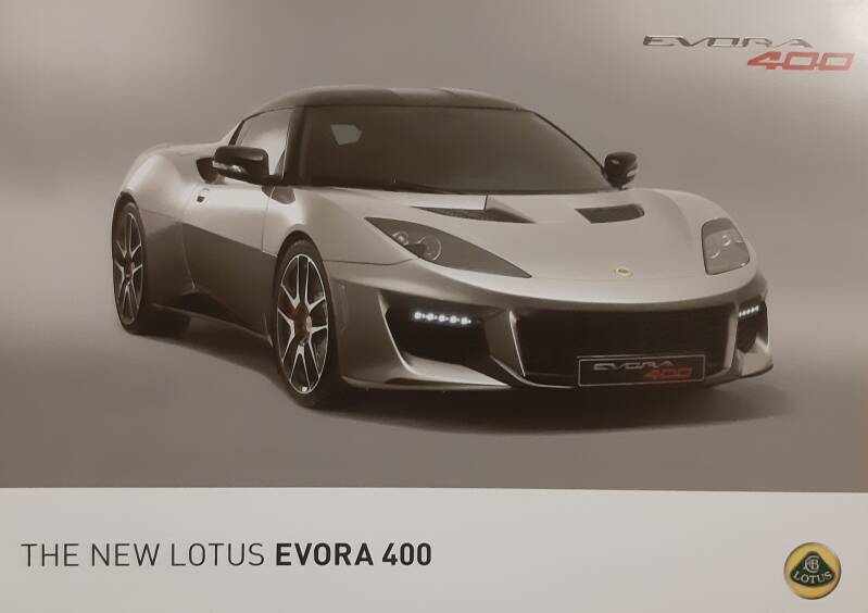 Een Engelstalige brochure met 4 pagina's. Uitgifte datum niet bekent, zo rond 2016. Beschrijft de Evora 400.