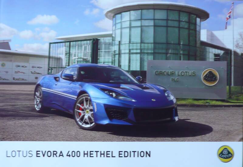 Een Engelstalige leaflet van de Evora 400 Hethel Edition. Uitgifte datum niet bekent.
