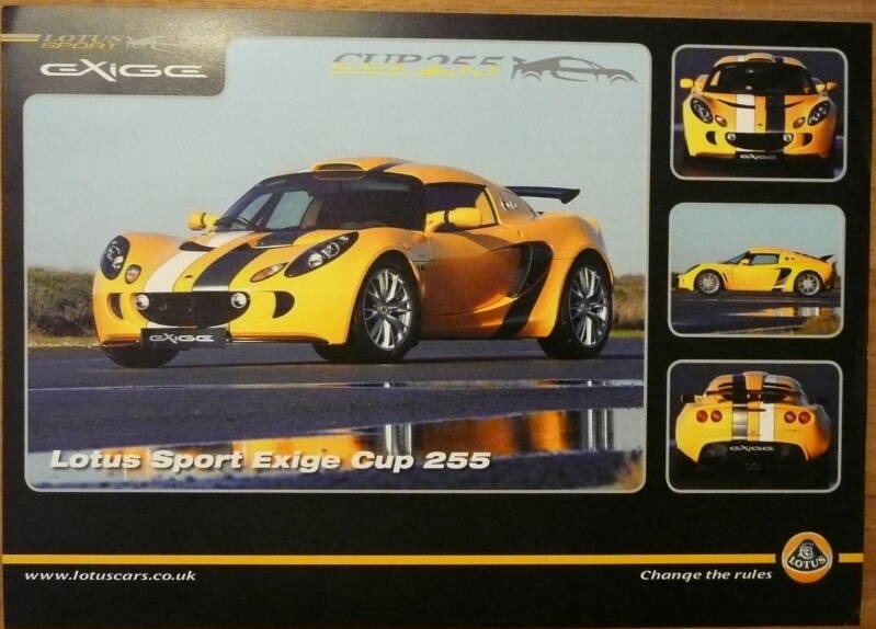Een Engelstalige leaflet van de Lotus Sport Exige Cup 255. Uitgegeven in 2006.