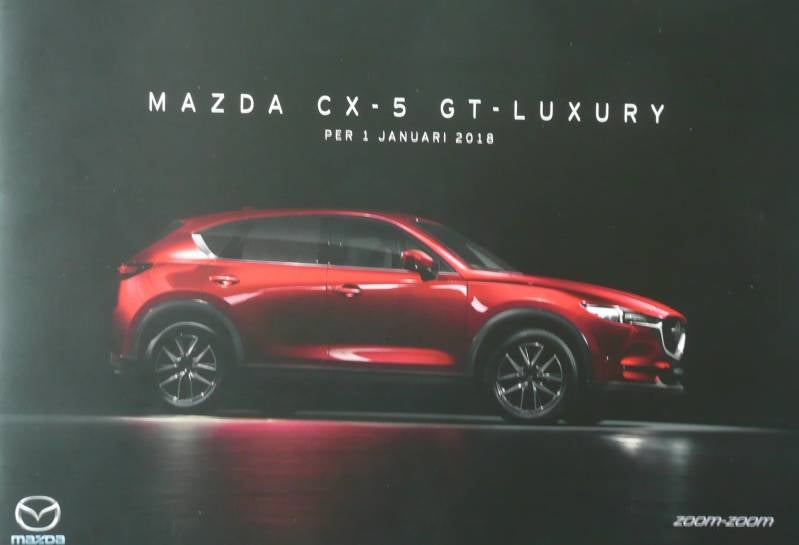 Een Nederlandstalige brochure met 12 pagina's. Uitgifte datum 01-2018. Beschrijft de CX-5 GT-Luxury.