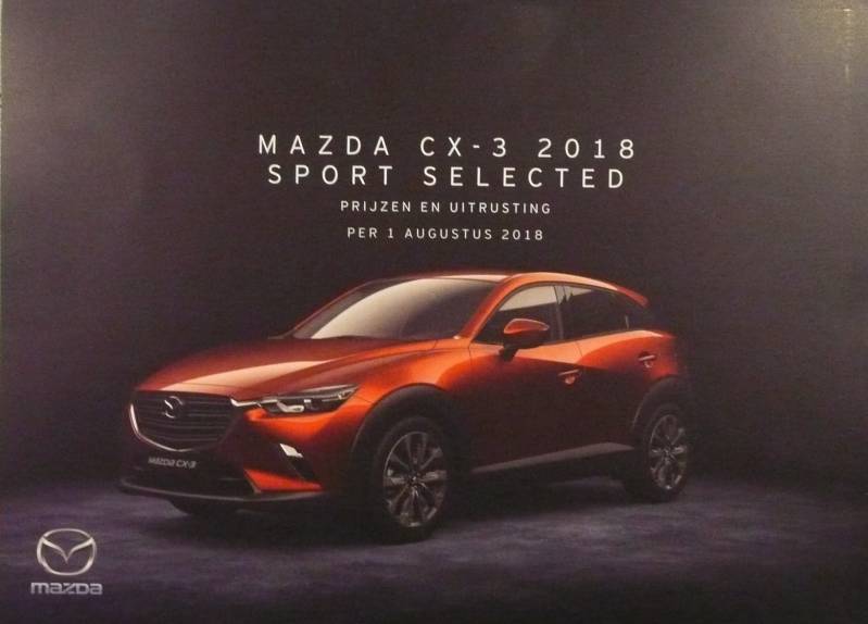 Een Nederlandstalige leaflet. Uitgifte datum 08-2018. Beschrijft de CX-3 Sport Selected.