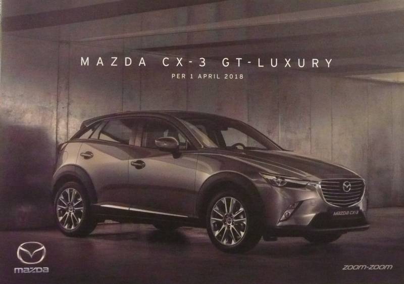 Een Nederlandstalige brochure met 4 pagina's. Uitgifte datum 04-2018. Beschrijft de CX-3 GT Luxury.