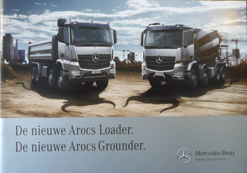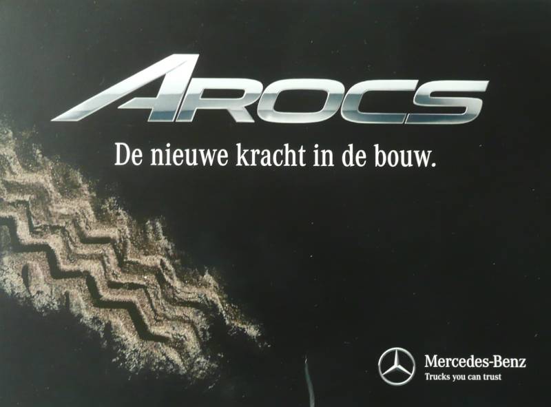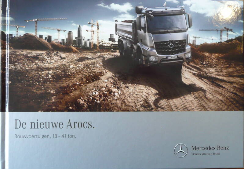 Een Nederlandstalige hardcover brochure met 80 pagina's. Uitgifte datum 09-2012. Beschrijft de Arocs Bouwvoertuigen 18-41 ton.