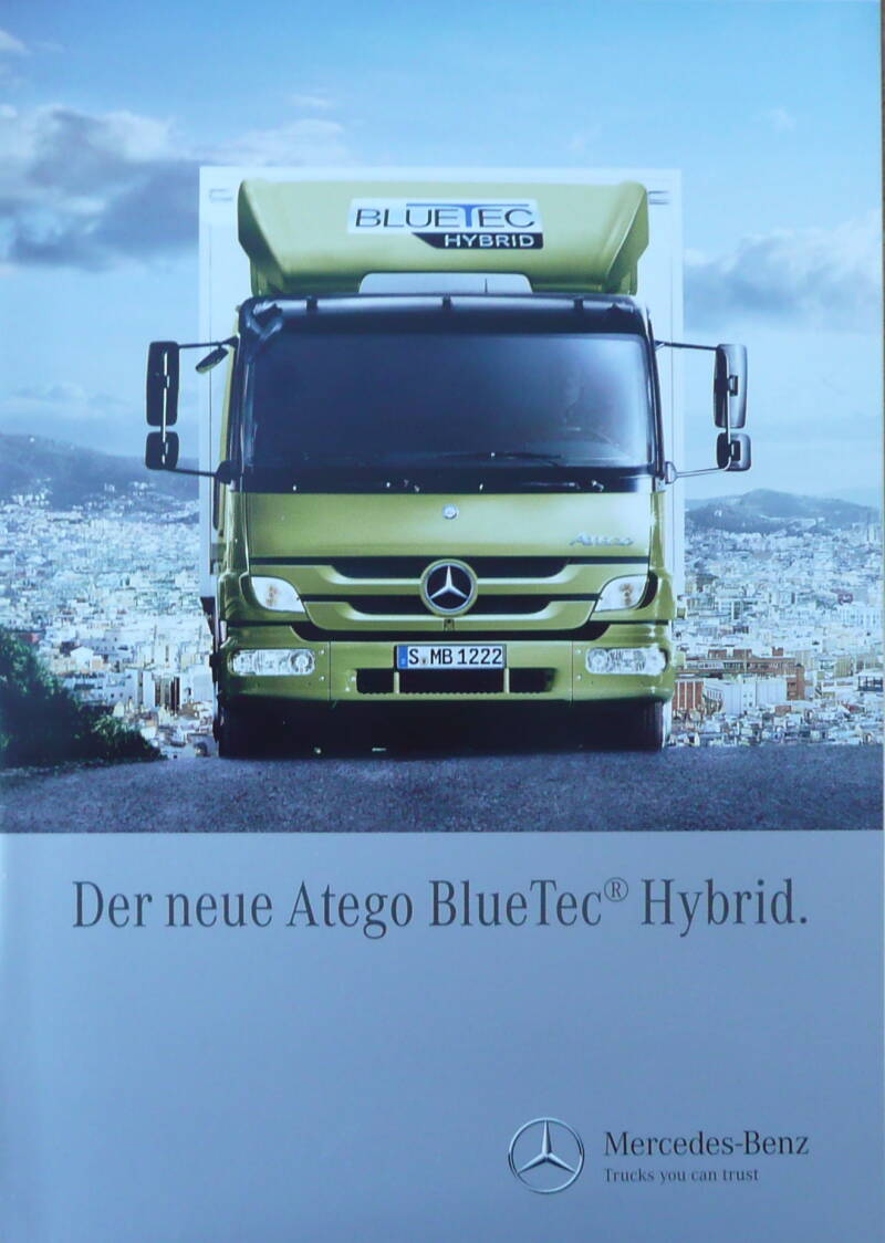Een Duitstalige brochure met 4 pagina's. Uitgifte datum 09-2010. Beschrijft de Atego BlueTec Hybrid.