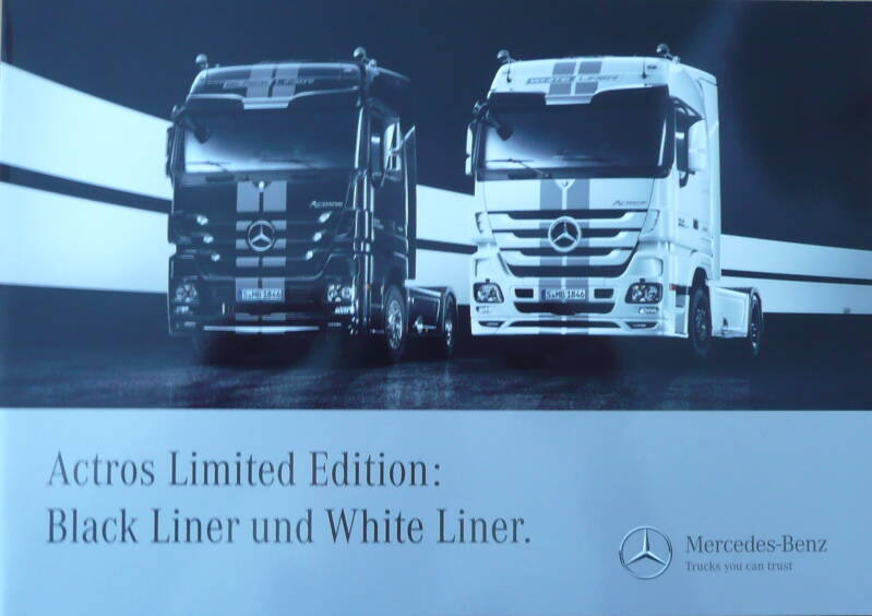 Een Duitstalige brochure met 12 pagina's. Uitgifte datum 09-2010. Beschrijft de Actros Limited Edition Black en White Liner.