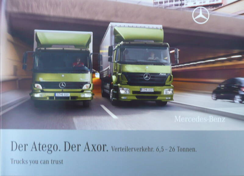 Een Duitstalige brochure met 64 pagina's. Uitgifte datum 09-2009. Beschrijft de Atego en Axor 6.5-26 ton.