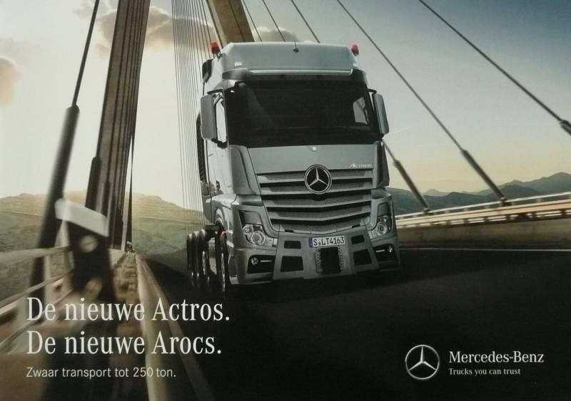 Een Nederlandstalige brochure met 28 pagina's. Uitgifte datum 03-2014. Beschrijft de Arocs en Actros zwaar transport tot 250 ton.