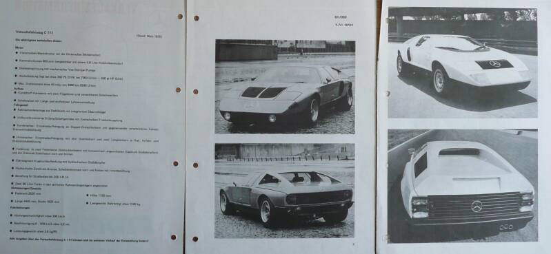 Duitstalige losse leaflets met verkoopinformatie van de C111. Uitgifte datum 01-1970.