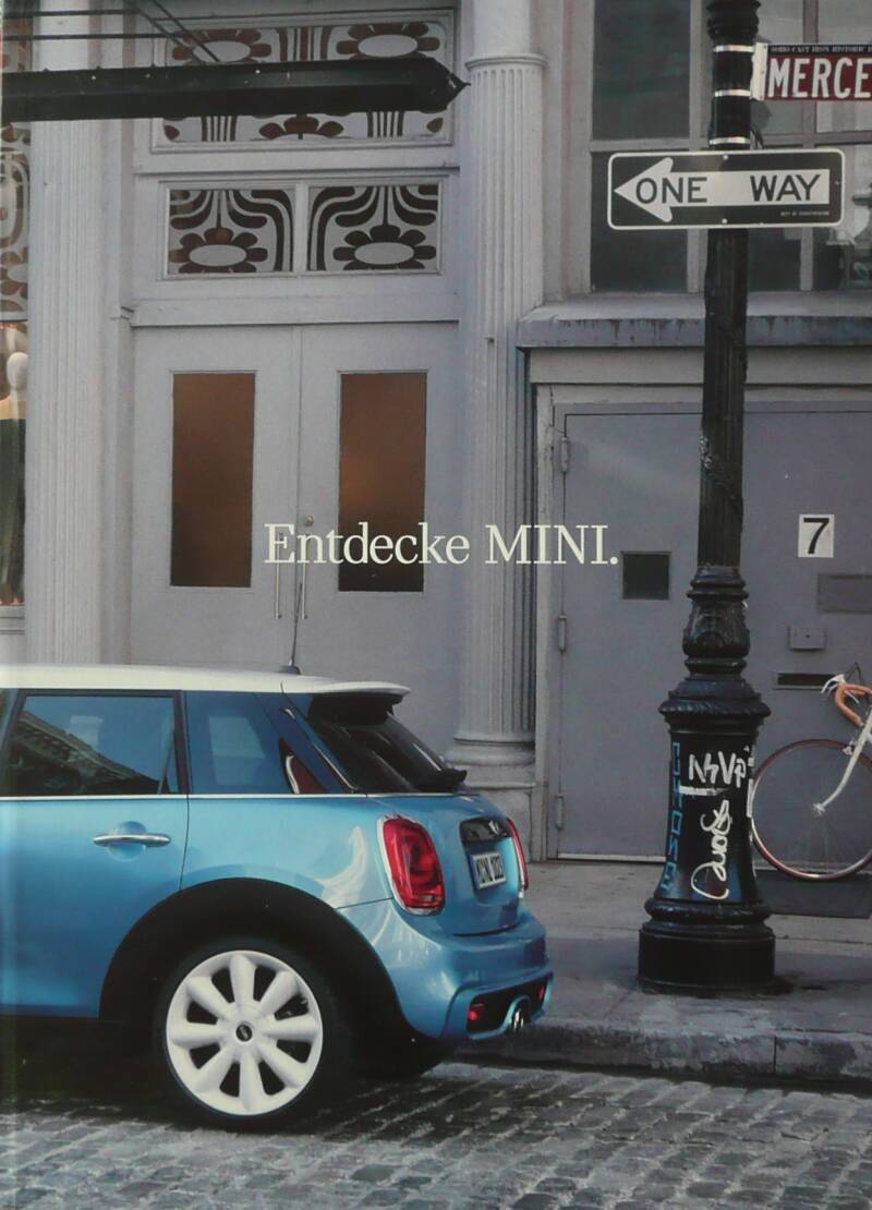Een Duitstalige hardcover brochure met 48 pagina's. Uitgifte datum niet bekent. Beschrijft de modellen van Mini en de geschiedenis van de auto.