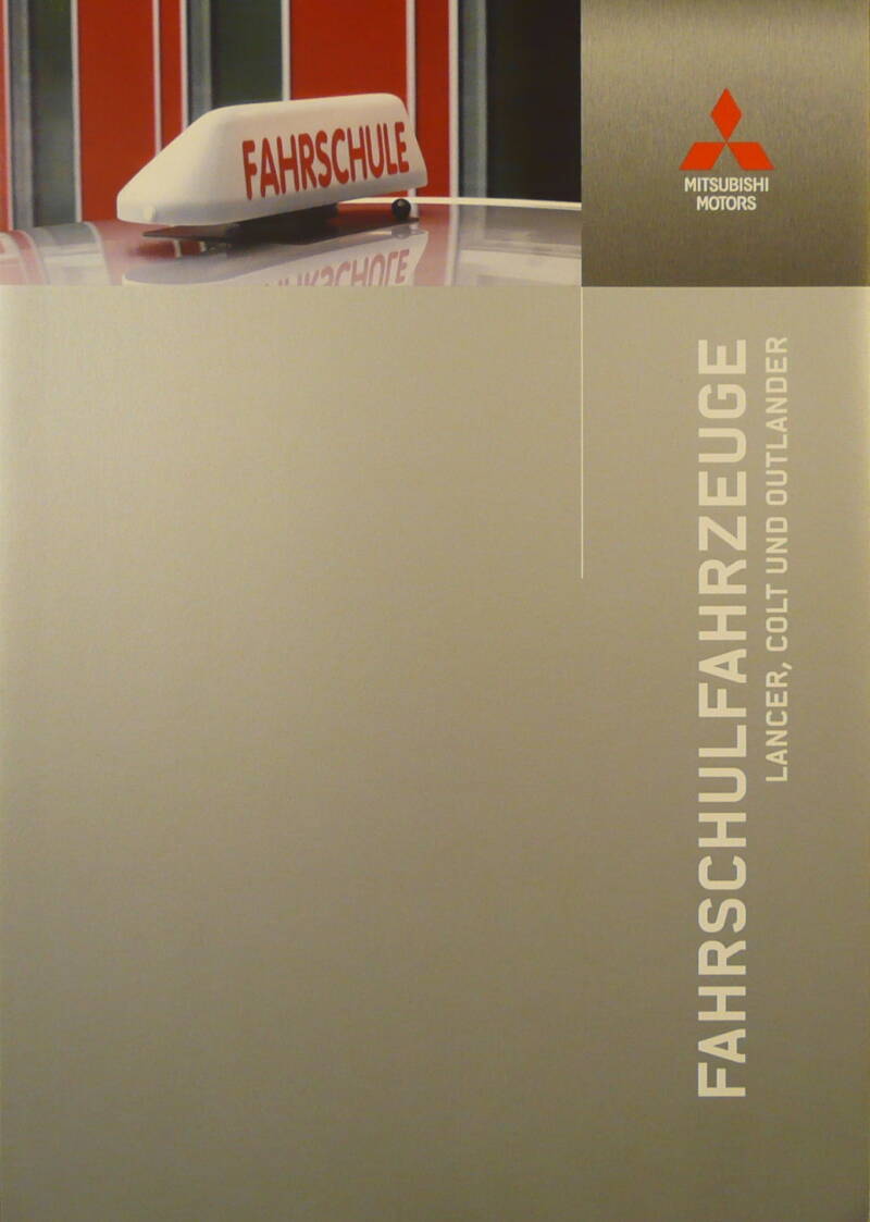 Een Nederlandstalige brochure met 8 pagina's. Uitgifte datum 10-2008. Beschrijft de Lancer, Colt en Outlander in rijschool uitvoering.