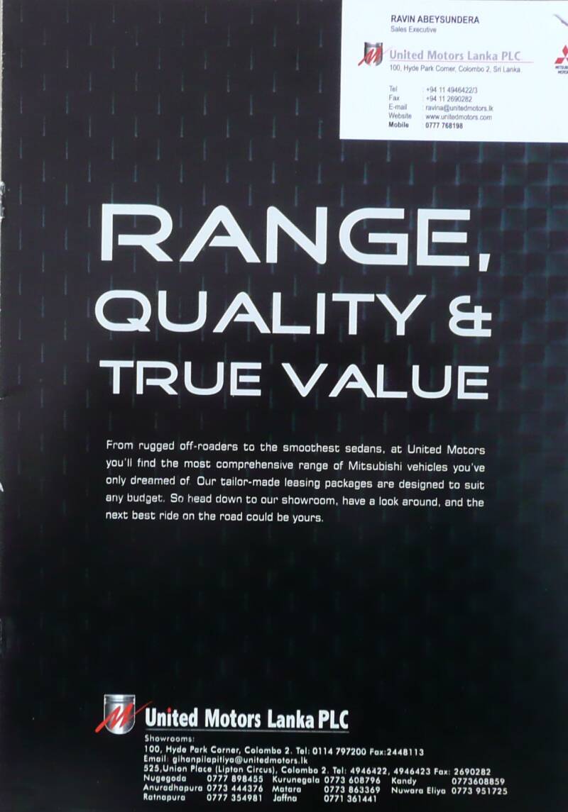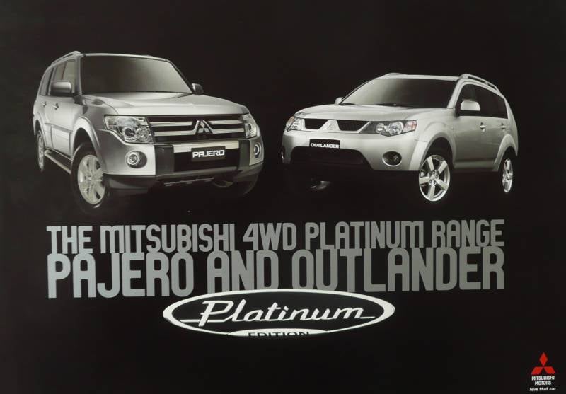 Een Engelstalige leaflet uit Australië. Beschrijft de Pajero en Outlander Platinum.