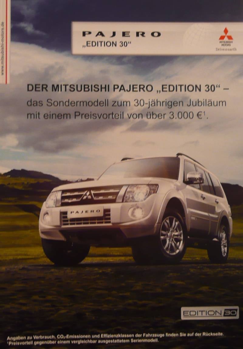 Een Duitstalige brochure met 4 pagina's. Uitgifte datum 10-2013. Beschrijft de Pajero Edition 30.