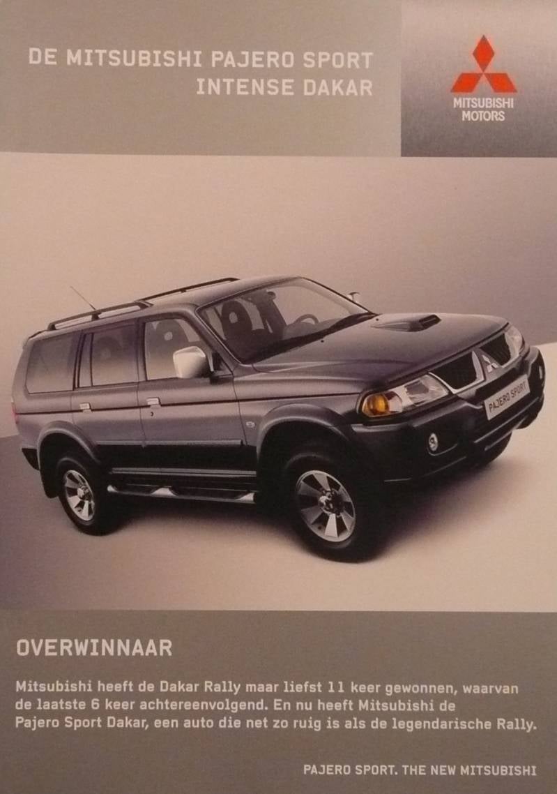 Een Nederlandstalige leaflet van de Pajero Sport Intense Dakar. Uitgifte datum niet bekent.