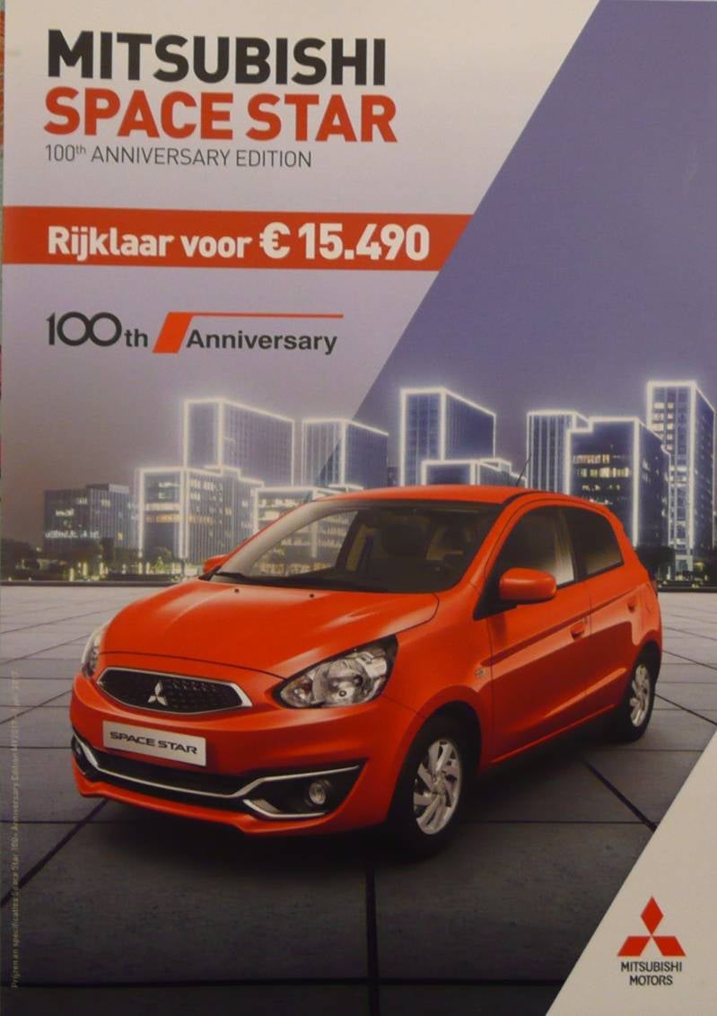 Een Nederlandstalige brochure met 4 pagina's. Uitgifte datum 07-2017. Beschrijft de Space star 100th Anniversary.