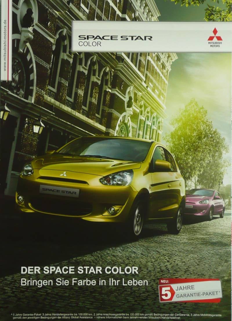 Een Duitstalige brochure met 6 pagina's. Uitgifte datum 05-2014. Beschrijft de Space Star Color.