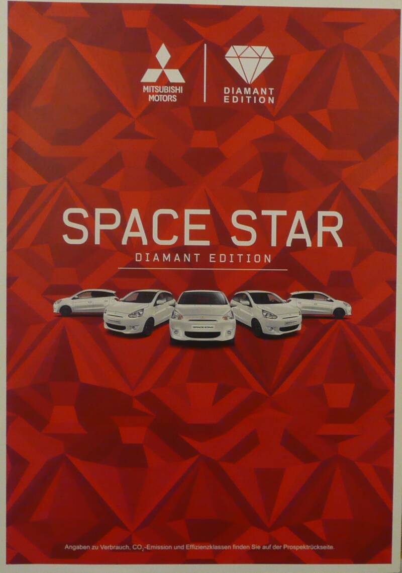 Een Duitstalige brochure met 8 pagina's. Uitgifte datum 09-2015. Beschrijft de Space Star Diamant Edition.