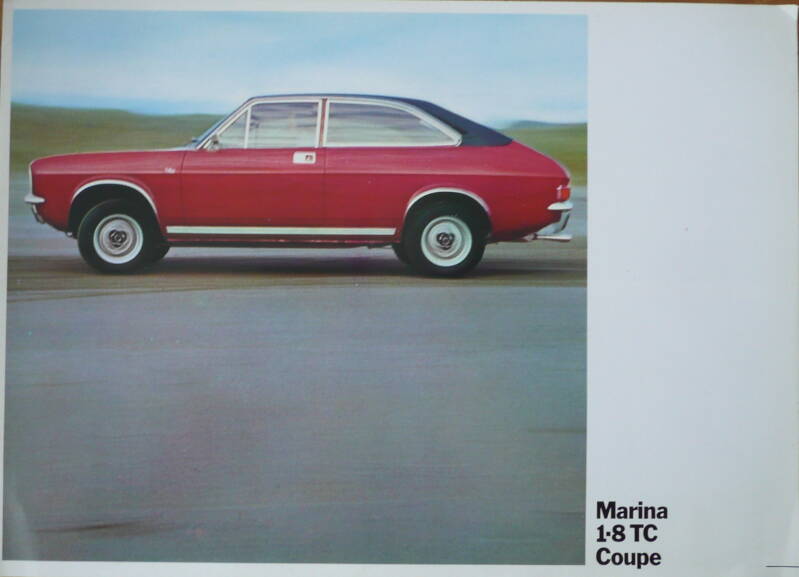 Een Nederlandstalige brochure met 4 pagina's. Uitgifte datum is niet bekent, zo rond 1975. Beschrijft de Marina 1.8 TC Coupe.