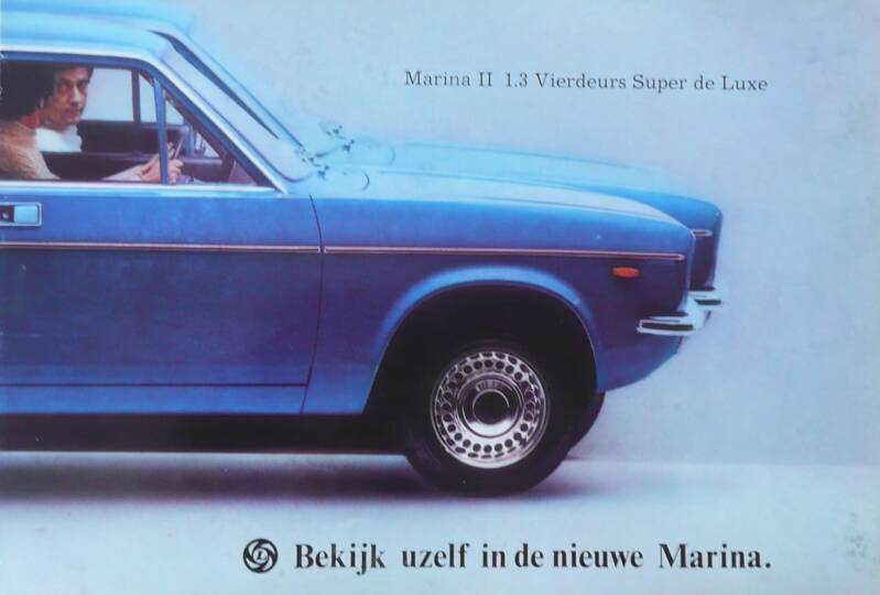 Een Nederlandstalige brochure met 8 pagina's. Uitgifte datum is niet bekent. Beschrijft de Marina II 1.3 4 deurs Super de Luxe.