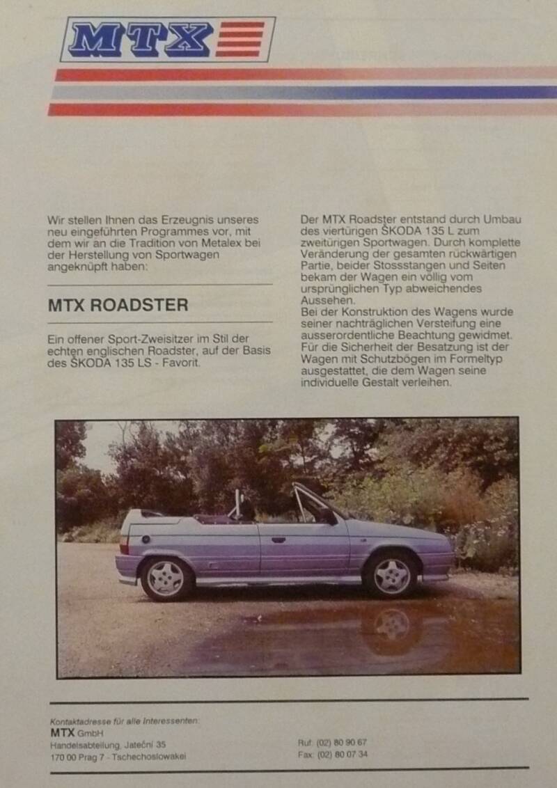 Werd in oktober 1991 aan het publiek voorgesteld. MTX had bijna 200 bestellingen voor deze auto, dus begon het bedrijf met de productie van een gelimiteerde serie van 100 stuks. Toen het project tijdens de vroege productiefase aan een nieuwe eigenaar werd verkocht, werd de fabriek getroffen door een brand die de productie van deze auto voor altijd beëindigde.